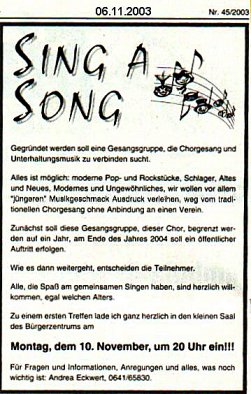gegründete Gruppe "Sing a Song" zum Gelingen des