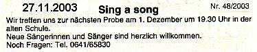 diesem Abend die Gruppe „Sing a Song", ein Ableger des Sinner Sängerhains,