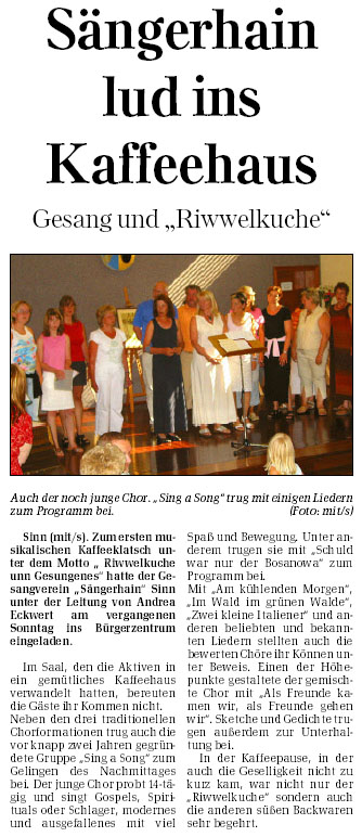 Sinn. (mit). Der erste musikalische Kaffeeklatsch des Gesangvereins